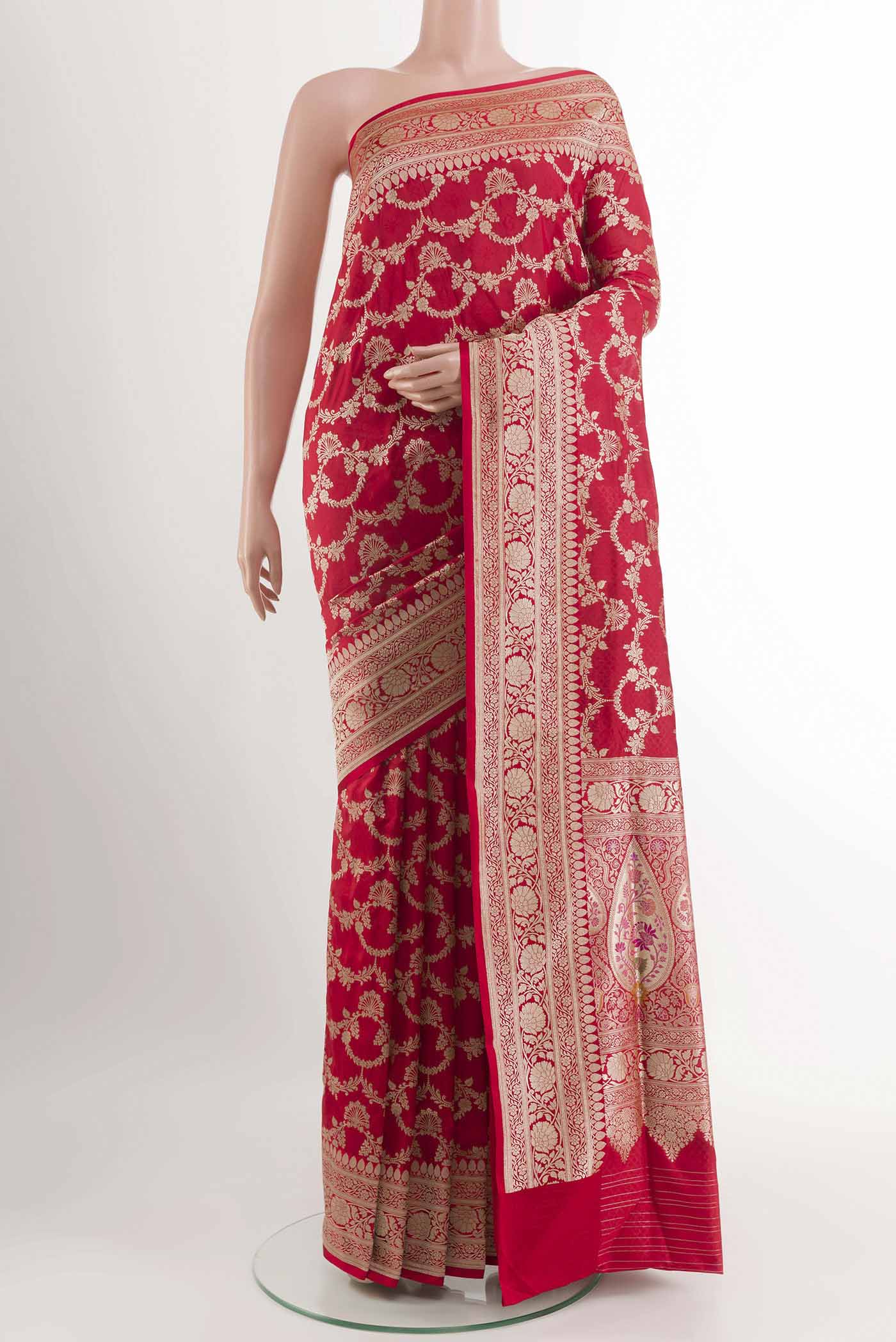 Green Banarasi Katan Silk Saree with Zari Butta on the body and Zari Border. Includes unstitched blouse.